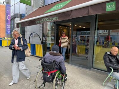 Exki est une chaîne belge de restauration rapide, proposant entre autres des produits frais, jus de légumes, plat végétarien, salade de pâtes, sandwich, salade de fruits… Nourriture fraîche, salades très copieuses. Une belle terrasse sur la place. Un endroit très agréable pour faire une pause déjeuner.    Pour les personnes en situation  de handicap l’endroit est spacieux, l’entré présente une petite marche de 7cm franchissable avec une aide,  les comptoirs sont trop hauts, le tables intérieur/extérieur sont  conformes, le système de paiement est amovible, les sanitaires ne sont pas accessibles en chaise roulante